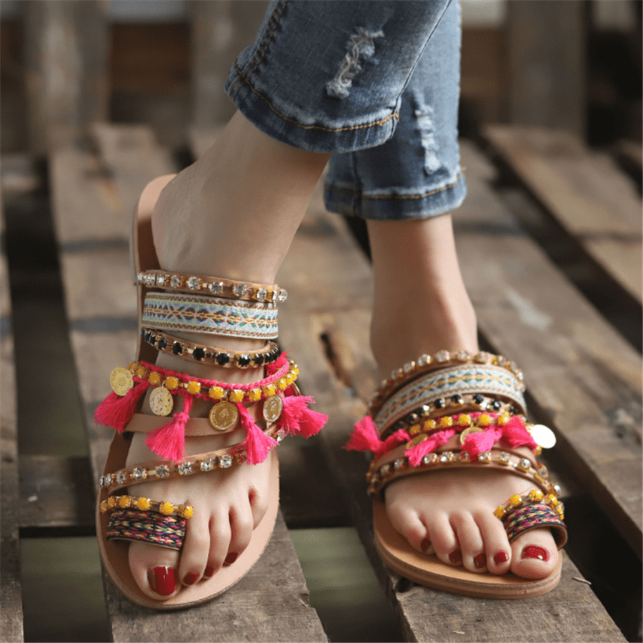 | Product Name | Vintage ethnic style tassel flat slippers |