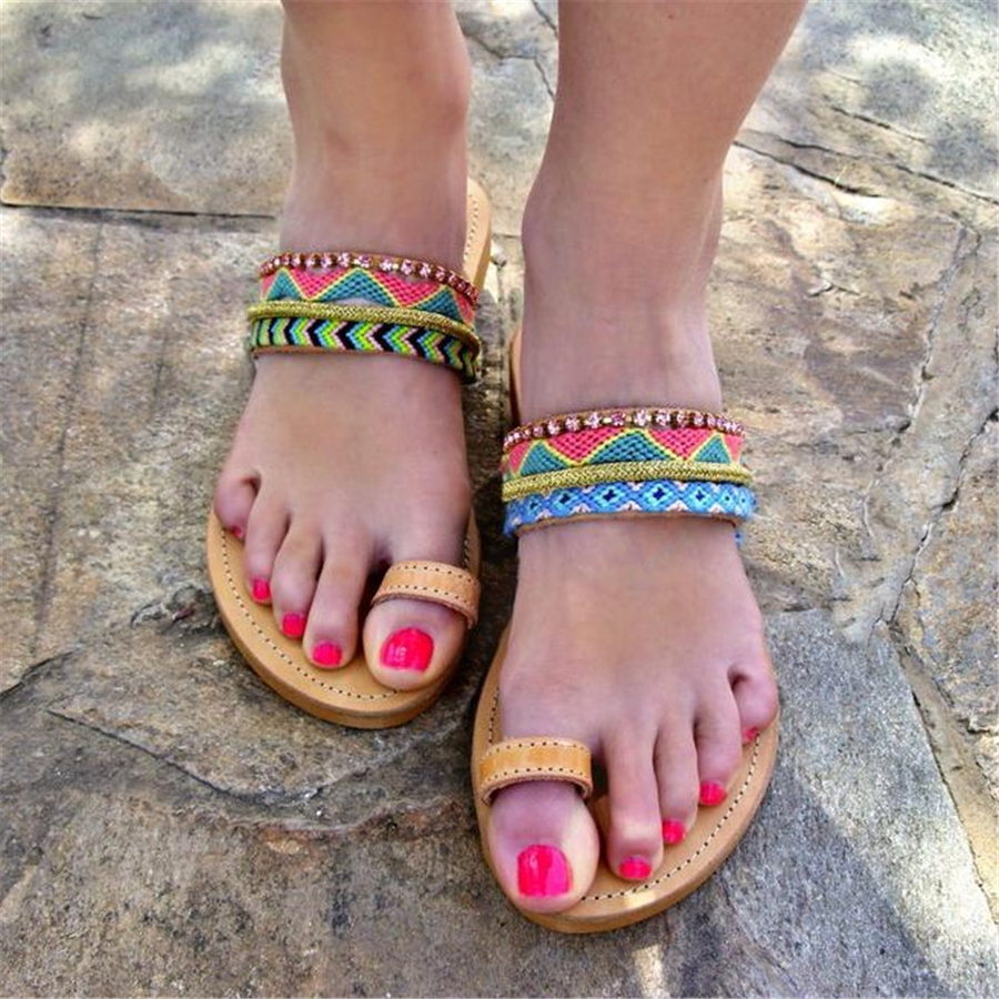 | Product Name | Fashion vintage color boho ethnic flat slippers |