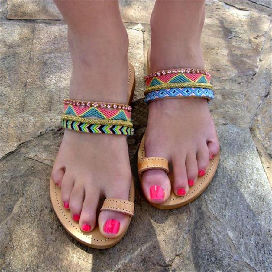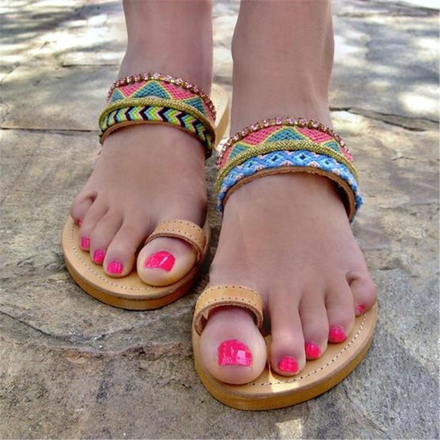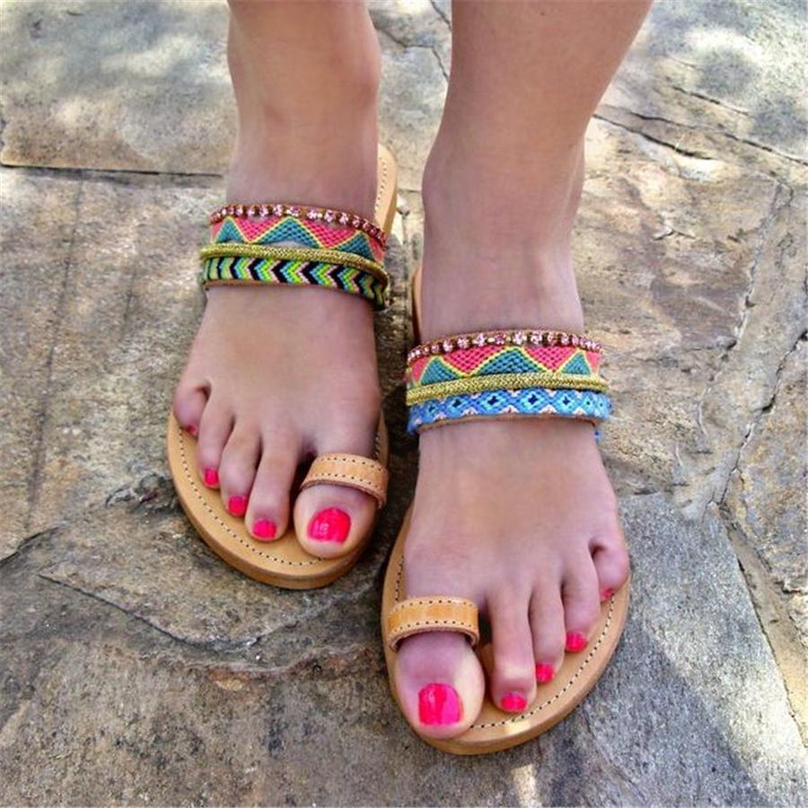 Fashion Vintage Color Boho Ethnic Flat Slippers