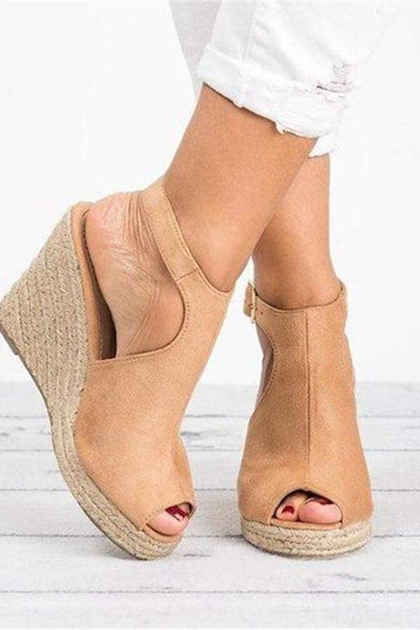 Fashion Wedge Heel Sandals Adjustable Buckle Peep Toe Sandals