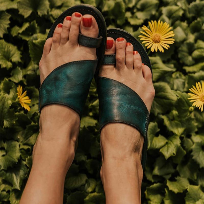 Women Leather Slippers Casual Fashion Flat Strap Plus Size Shoes