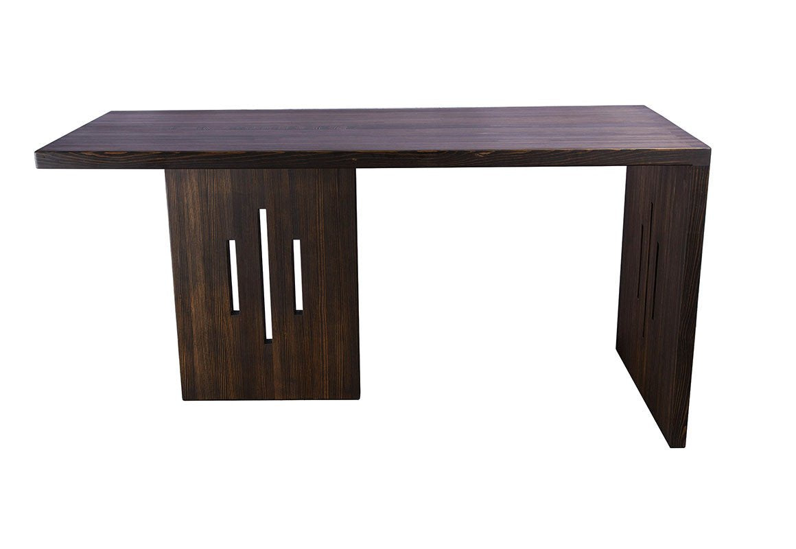 Our Split Lilly Dining Table brings together the modern look of our Lilly-style legs and the functionality of our Kingpin Dining Tables. The spliced-through "rudder" leg provides a bold accent of rich end grain on top, perfectly situated for maximum stability and balance throughout. Like all pieces in the Modern Rustic collection, it is handmade from 100% reclaimed bowling lane heart pine, and features second-to-none solid wood craftsmanship that will last for generations. Standard height is 30 inches.