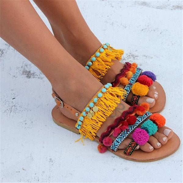 Product Name Fashion boho color tassel flat sandals Brand lanceneo SKU 0EC3F7FDED41 Gender Women Shoe Type Casual /Fashion Type Sandals Occasion Daily Life Upper Material Artificial PU+Cloth Outsole Material Rubber Heel Height 1-3cm Package included...