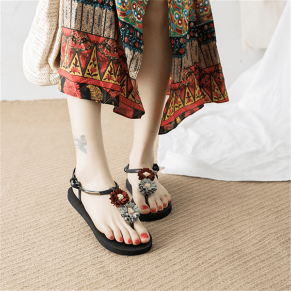 Fashion vintage flower bohemian ethnic flat sandals