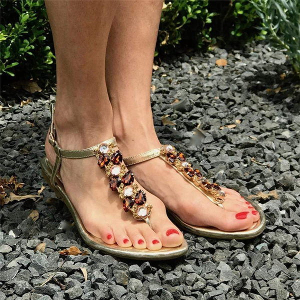 Buckled Openwork Rhinestone Flat Sandals