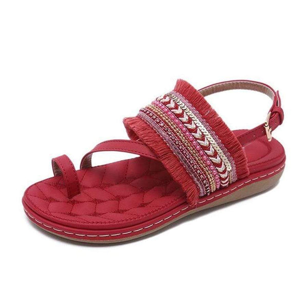 Vintage Ethnic Style Beaded Tassel Sandals