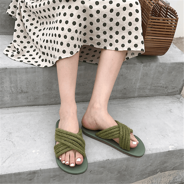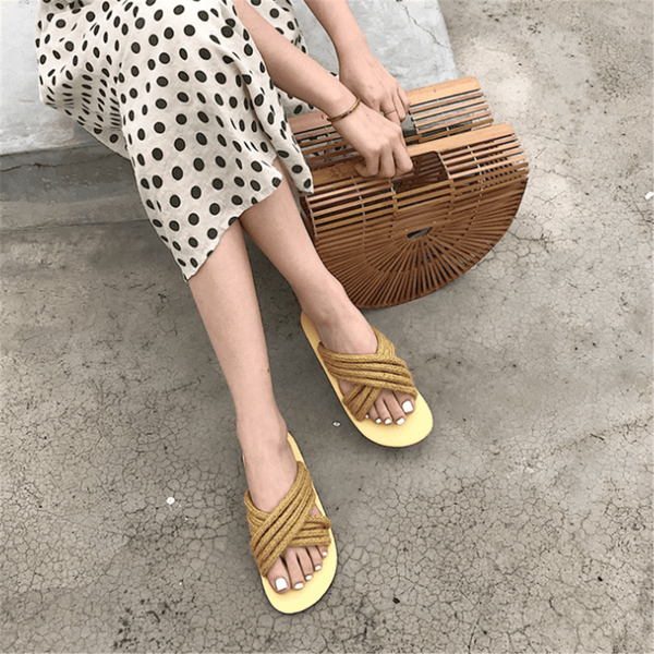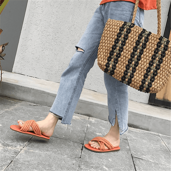 Product Name Fashion simple casual linen woven flat slippers Brand modevova SKU A921819BD0EF Gender Women Shoe Type Casual/Fashion Type Flip Flop Occasion Daily Life Upper Material Flax Outsole Material Rubber Heel Height 1-2cm Package included 1*pair of...