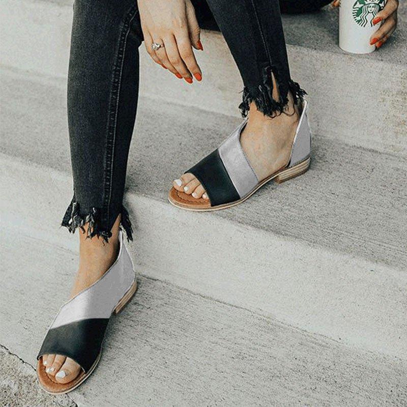 | Product Name | Women Leather Flat Heel Patchwork Sandals |