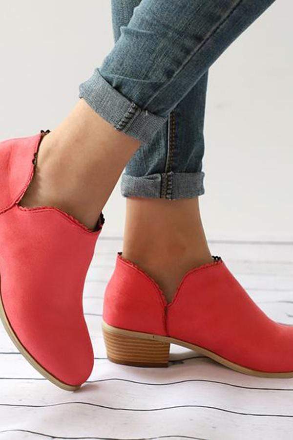 Women Low Heel Round Toe Lace-Up Casual Boots