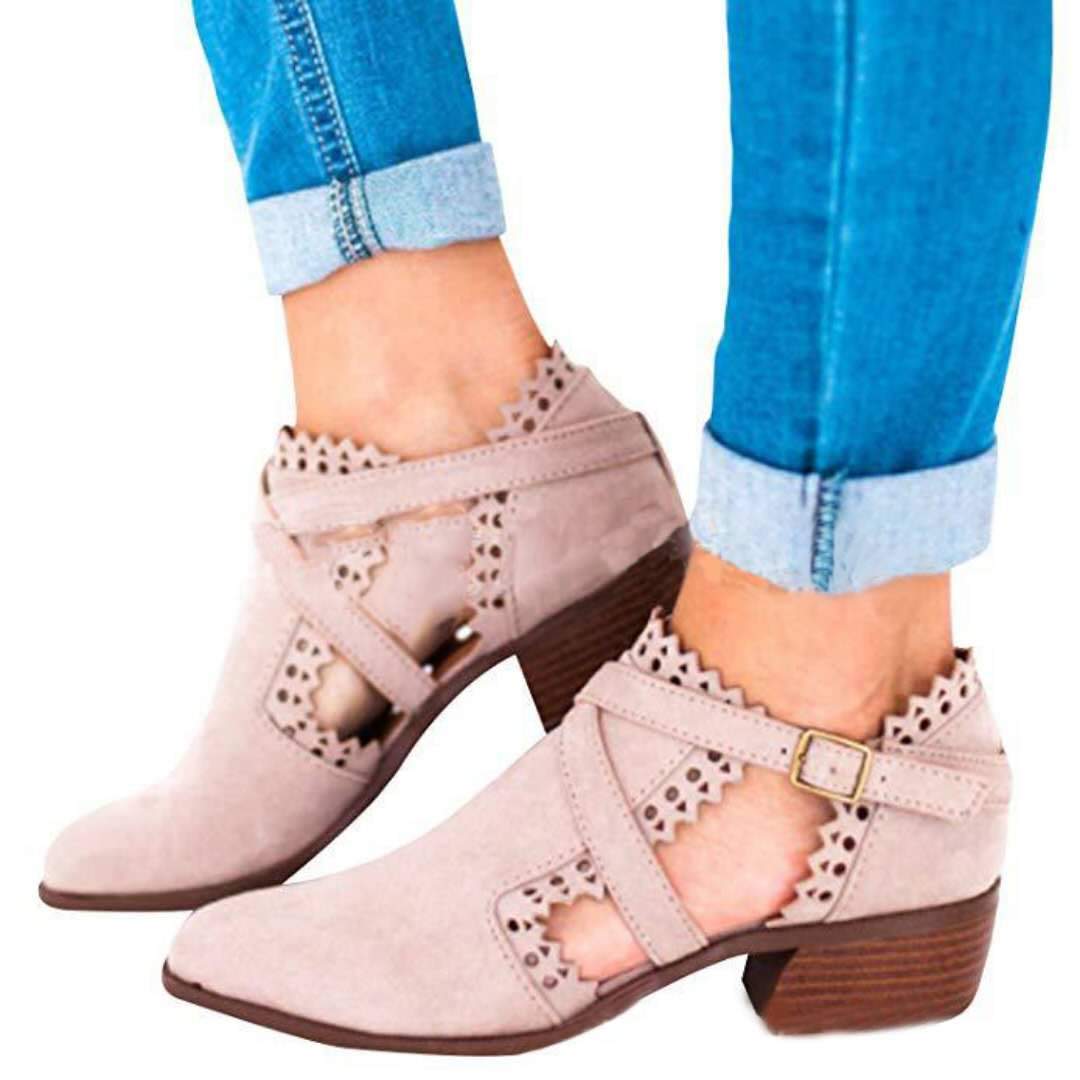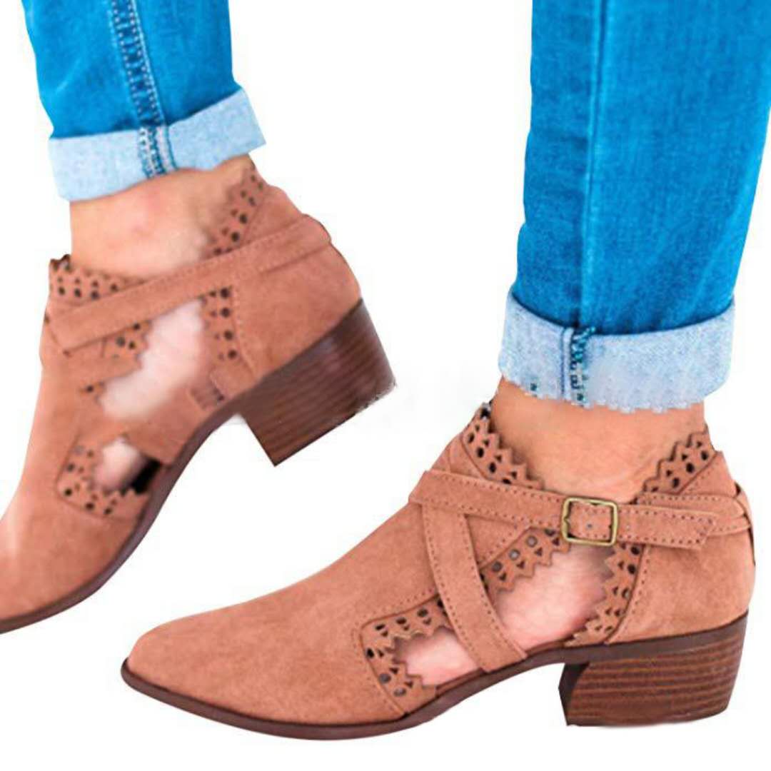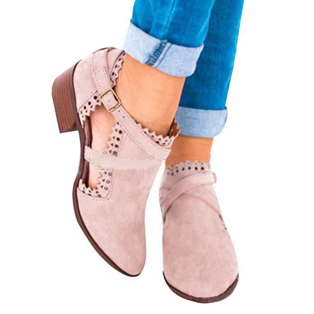 Women Chunky Heel Belt Buckle Ankle Boots