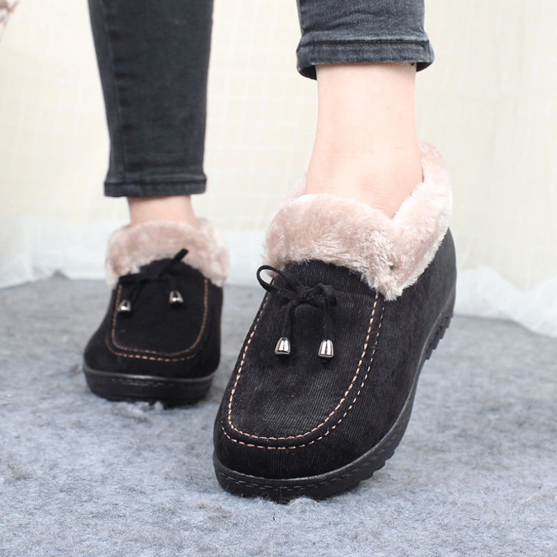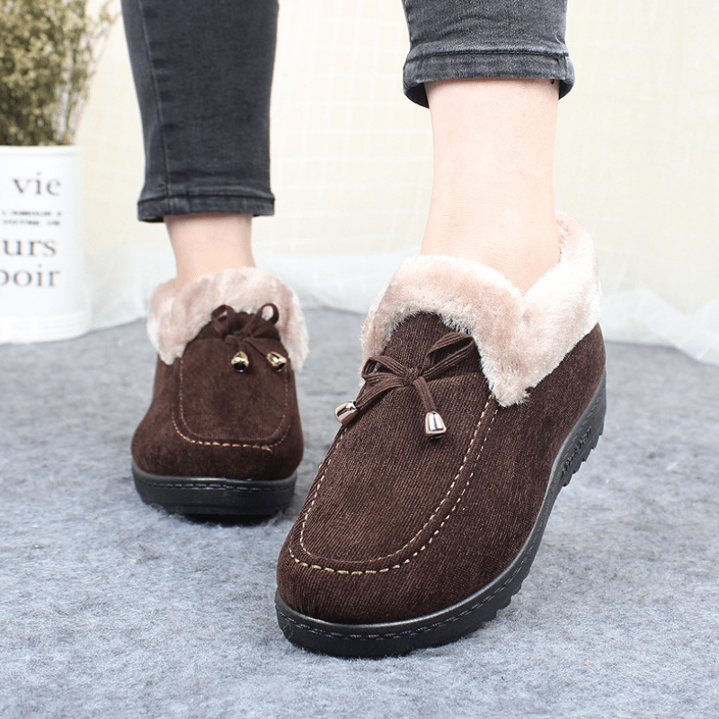 Women Plain Middle-Aged Velvet Warm Flat Boots