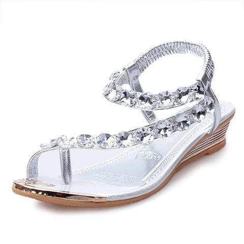 Rhinestone wedge heel slip resistant toe sandals