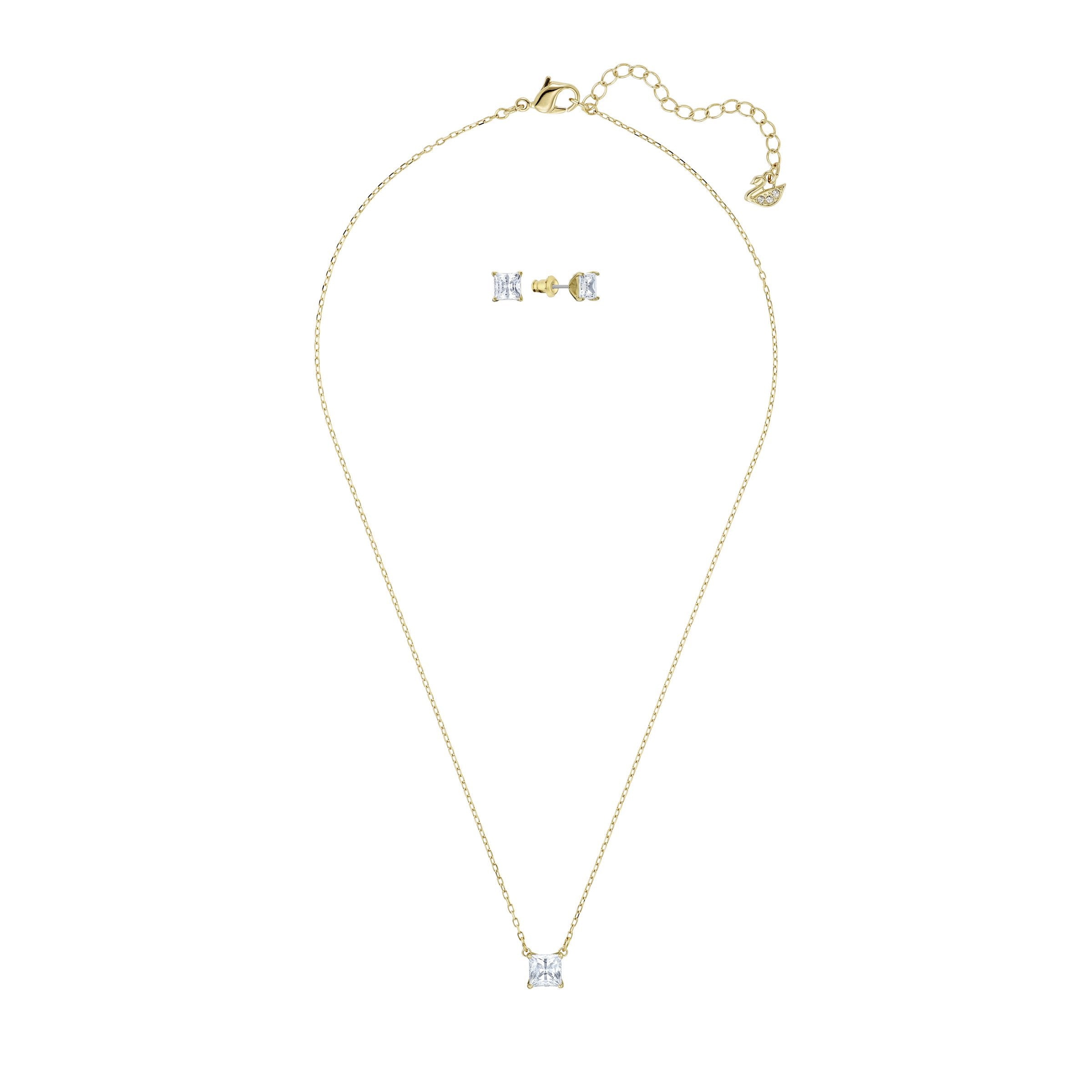 A true timeless essential and the perfect romantic gift. This stunning set from our bestselling Attract collection includes a gold-tone plated necklace and a pair of pierced stud earrings. Each piece features a square-cut stone for brilliant sparkle, which will be treasured forever.Article no.:5510683