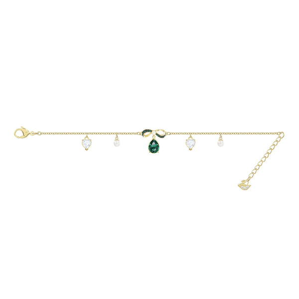 Our Black Baroque collection is inspired by the opulent and ornate design style of the Baroque period. Combining vintage elegance with fresh sparkle, this gold-tone plated bracelet is embellished with dangling clear crystals and Swarovski Crystal Pearls. An emerald green-colored...
