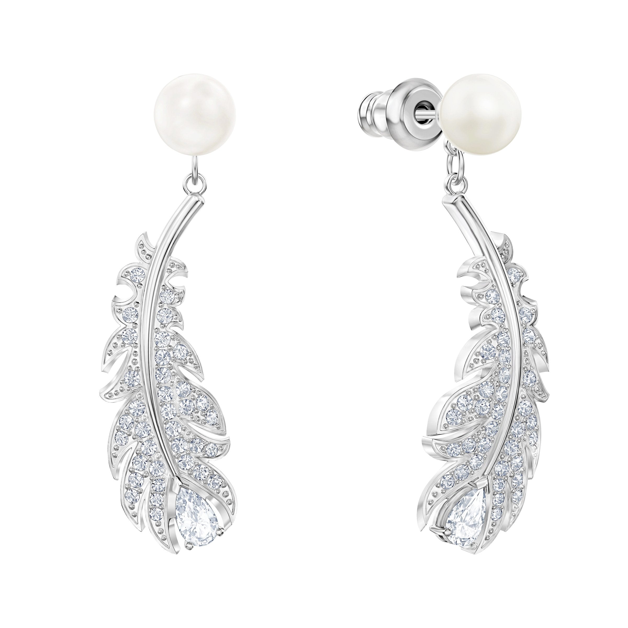 Feathers are the must-have motifs of the season, and this elegant pair of pierced earrings offers a very refined and easy-to-wear spin on the trend. Exquisitely crafted with Crystal Pearls, they will infuse your party season outfits with classic rhodium plated glamour.Article no.:5496052