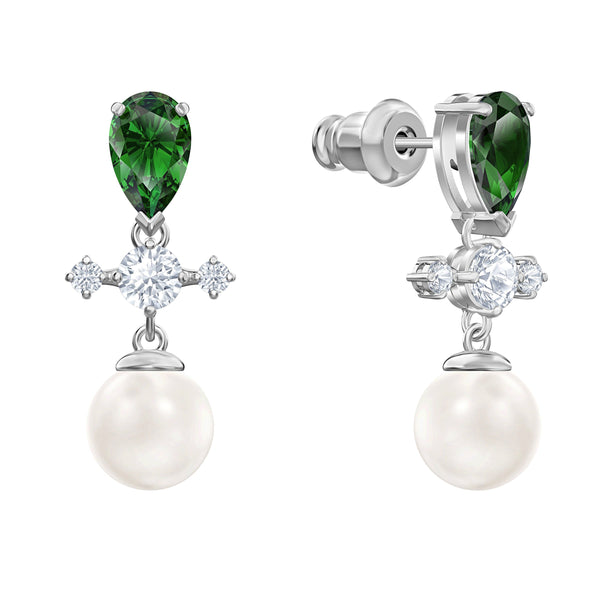 Our rhodium plated Perfection collection is inspired by the latest trends in contemporary jewelry design. This exquisite pair of drop pierced earrings brings together a mix of materials, including green-colored stones and classic Crystal Pearls. Radiant and timeless, they will...