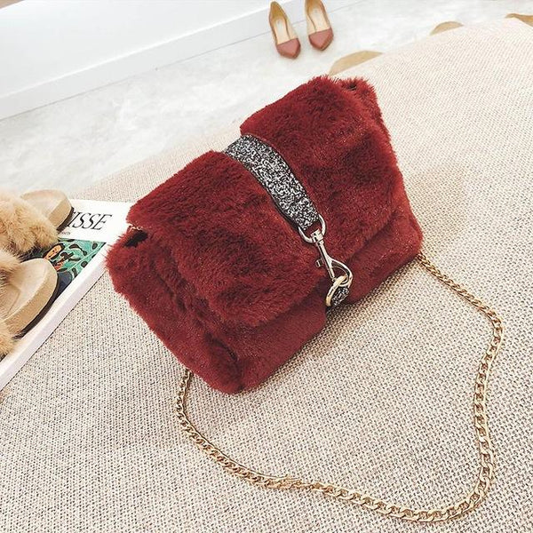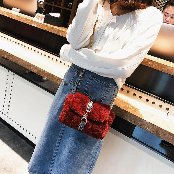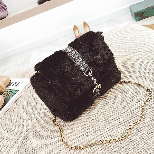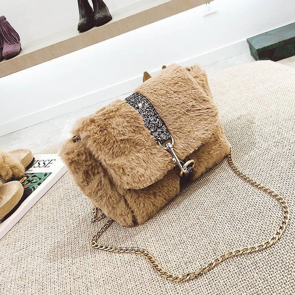 Torbica s krznenim presvlakom i lancem