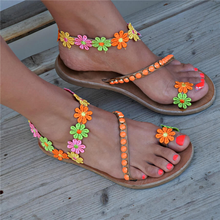 | Produktnamn | Bohemisk färg blomma platta sandaler |