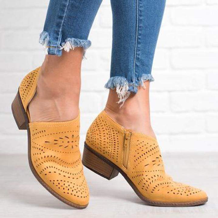| Product Name | Hollow-out Low Heel Cutout Booties Faux Suede Zipper Ankle Boots |