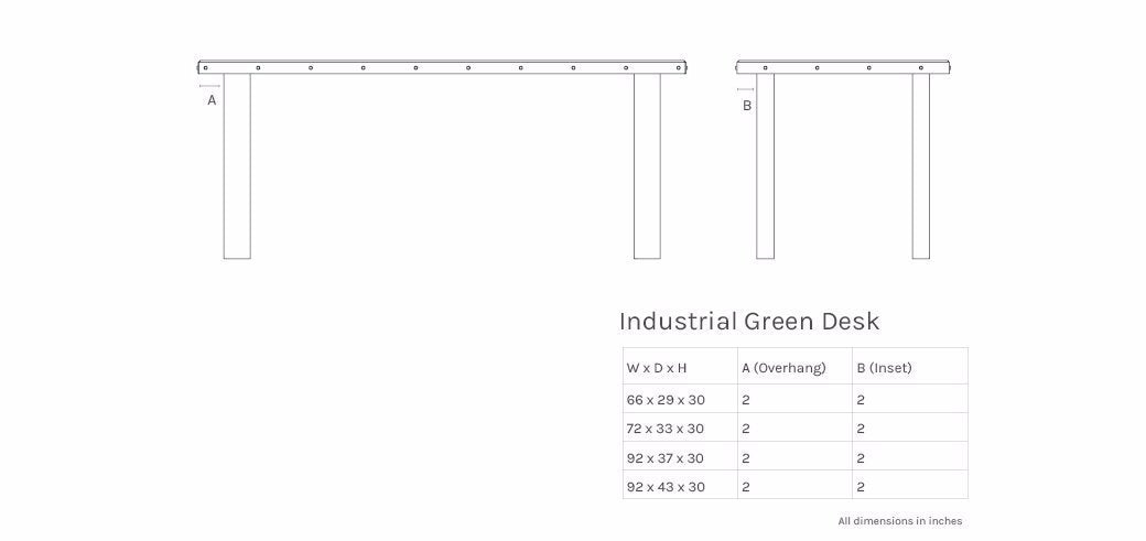 CounterEvs Industrial Green Desk har rena, moderna linjer, klassisk återvunnen bowlingbana hjärtats furu ovanpå våra signatur I-balkar. Anpassade alternativ inkluderar benstilar, toppkantstilar, svärtat stålband, val av fläckar, storlekar och svarta valnötsinlägg.