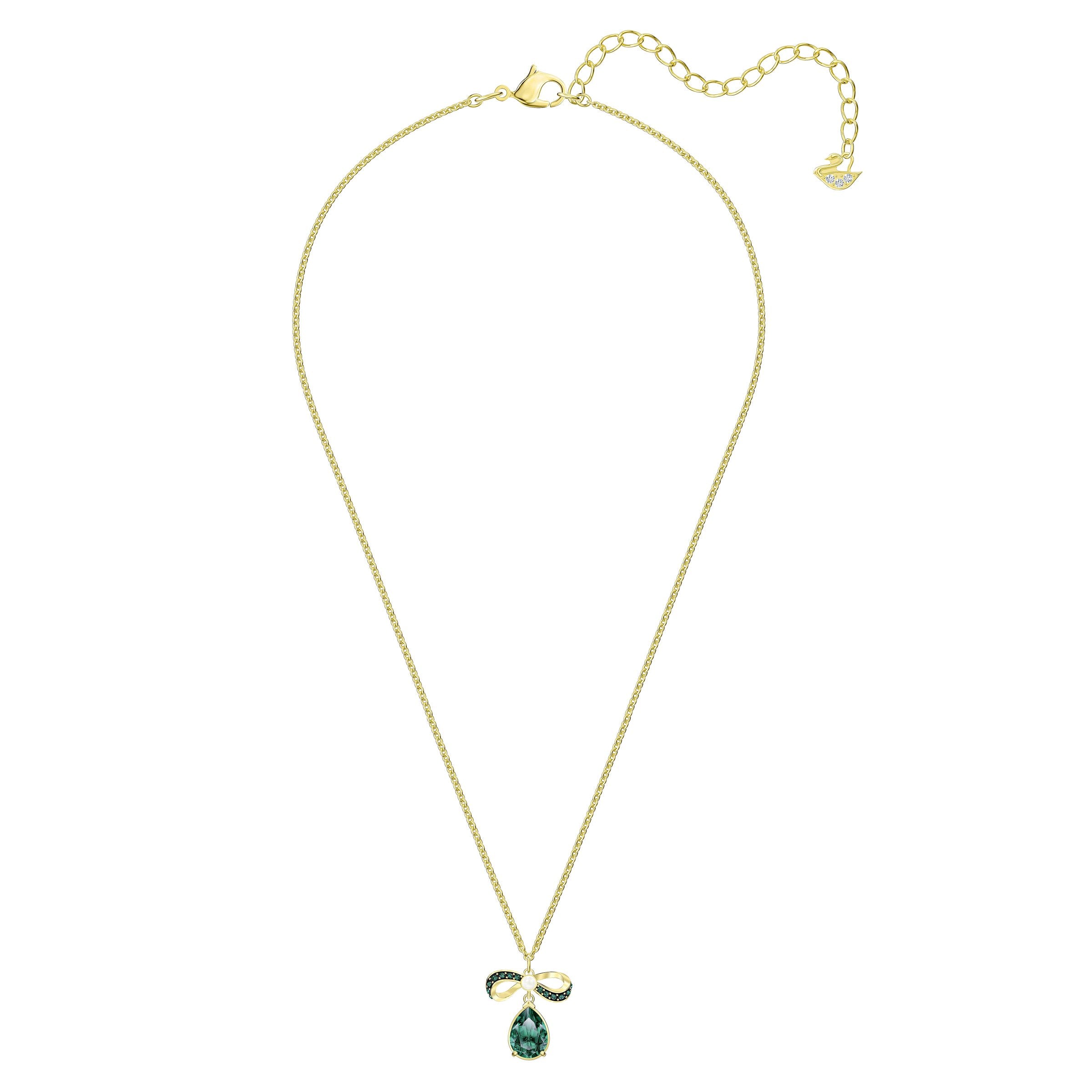 Vår Black Baroque-kollektion är inspirerad av barockens överdådiga och utsmyckade designstil. Denna guldfärgade hängsmycke kombinerar vintage elegans med fräsch gnistra och är utsmyckad med klara och smaragdgröna kristaller och ett delikat rosettmotiv. Hänget kommer på en kedja.Artikelnr:5490974