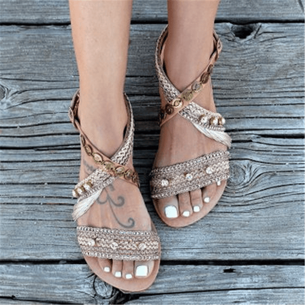 Product Name Metal decorative buckle with flat sandals Brand modevova SKU 0A4D68E0B6CB Gender Women Shoe Type Casual /Fashion Type Sandals Occasion Daily Life Upper Material Artificial PU Outsole Material Rubber Heel Height 1-2cm Package included...
