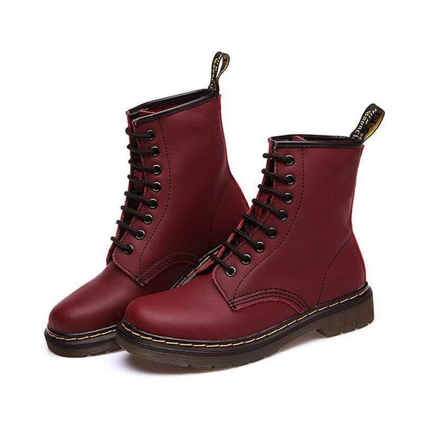 Platta lågklackade brittiska Martin-stövlar i röret Par Korta stövlar i läder