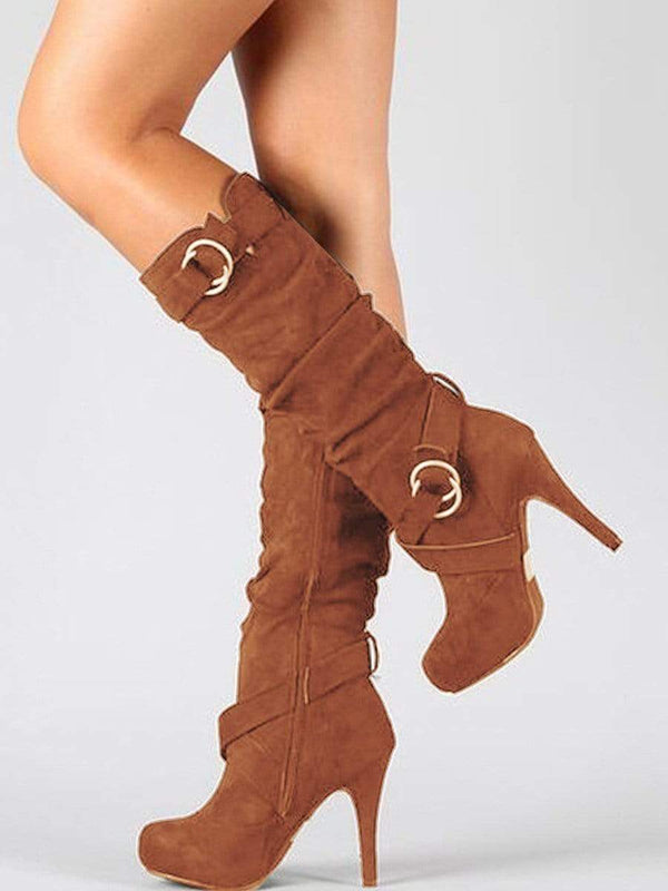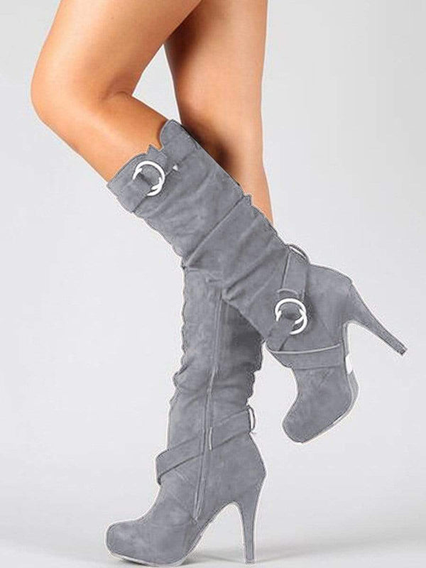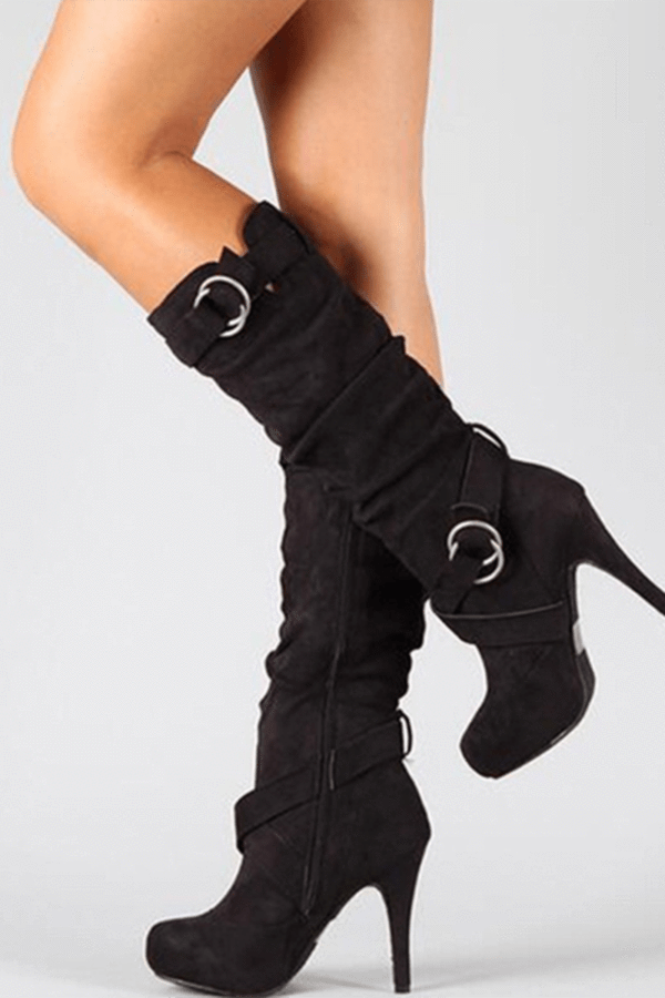 Produktnamn: Hooped plattform från högklackade stövlar Märke: Arealook SKU:185F2EAED96C Ovandel i fuskmocka Utsmyckande bågar Spetsiga klackar Kalvstövlar Plattformssula Torka rent Hälhöjd: 6~8 cm/2,4''~3,1''