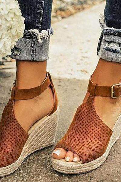Plain Velvet Peep Toe Date Wedge Sandaler