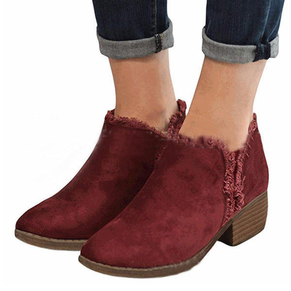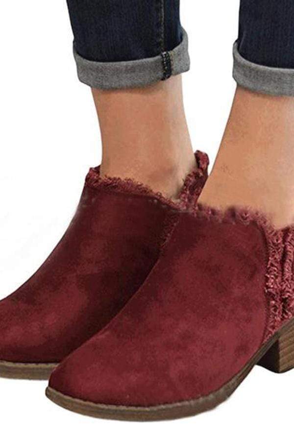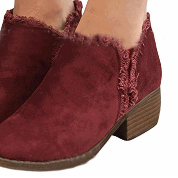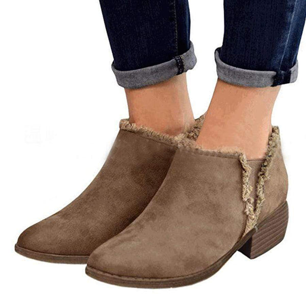 Vanlig Chunky medellång klack sammet rund tå Casual Date ankelstövlar