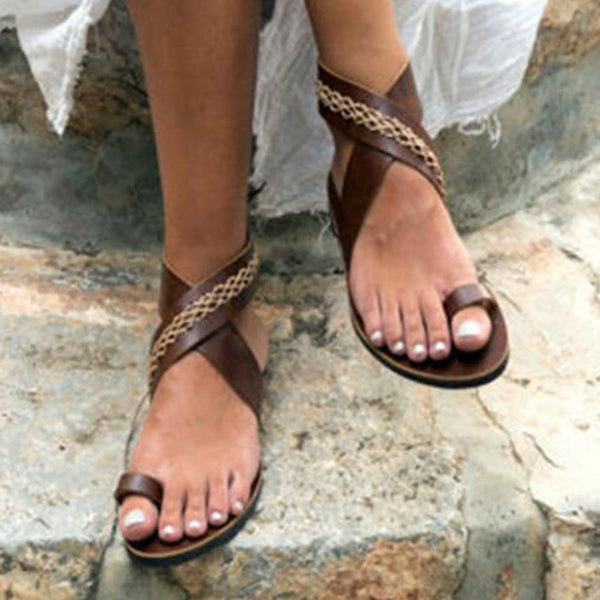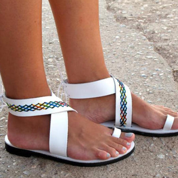 Bohemian Flat Ankel Strap Peep Toe Beach Casual Gladiator Sandaler