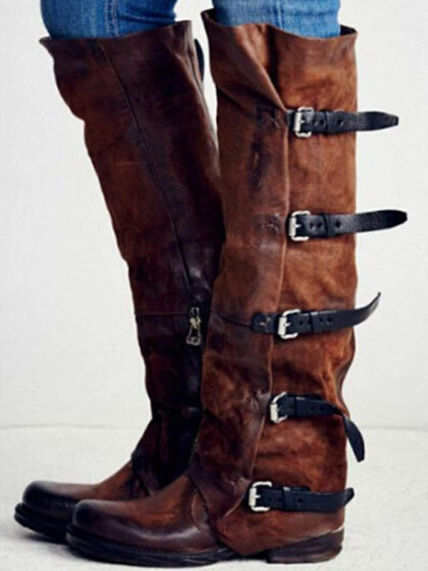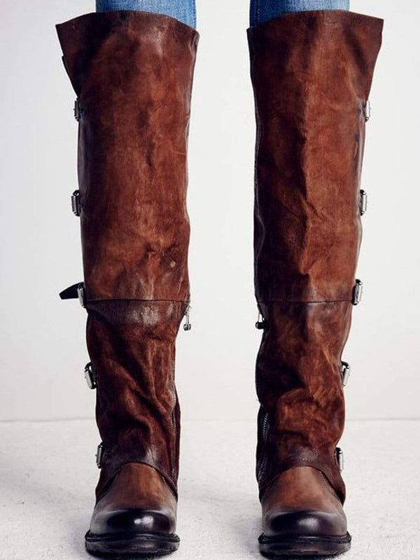 Ruffle Knä Boot med Spänne