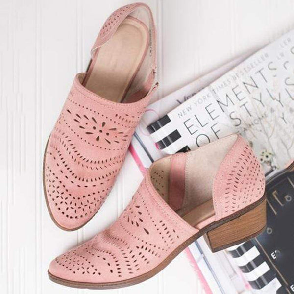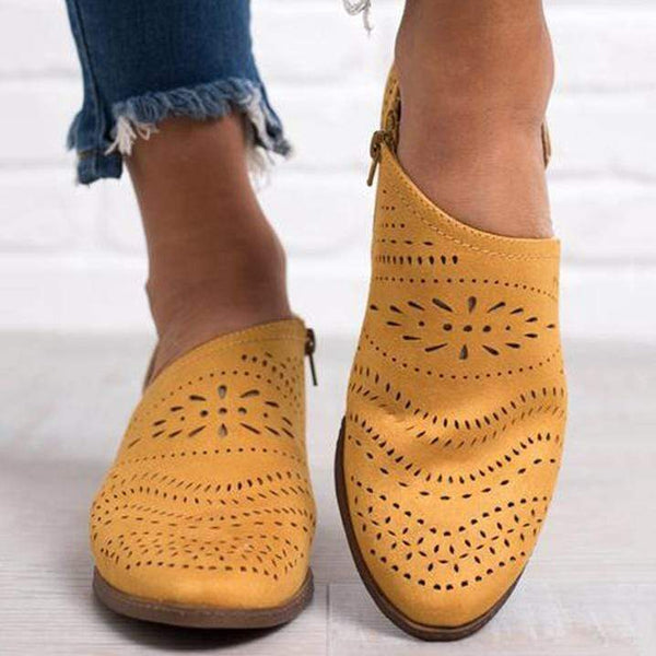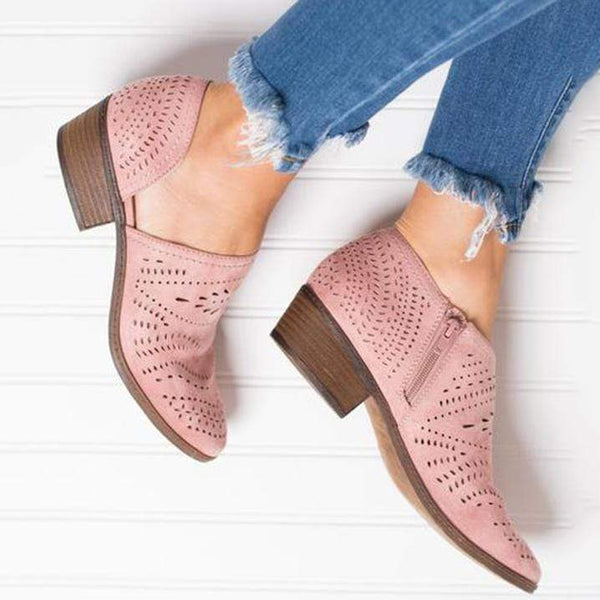 Hollow-Out Low Heel Cutout Booties Faux Suede Zipper Ankle Boots
