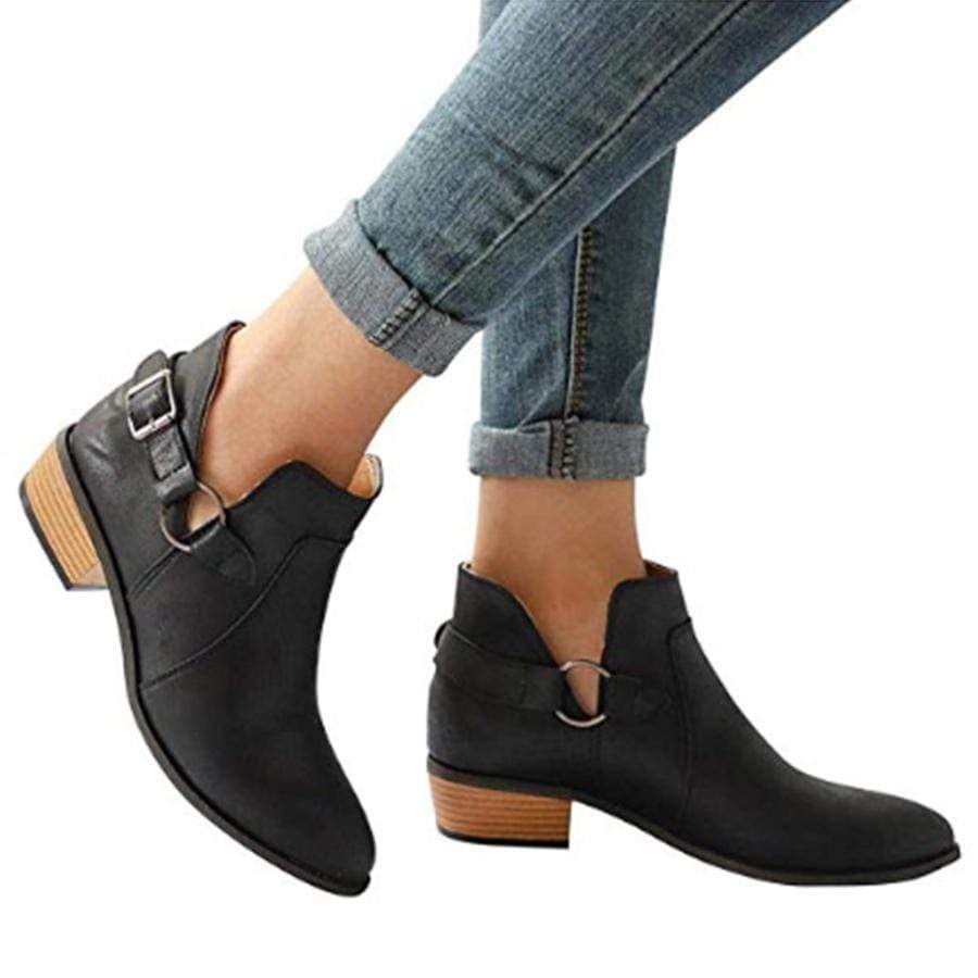 Vanliga chunky lågklackade rund tå utomhus ankelstövlar