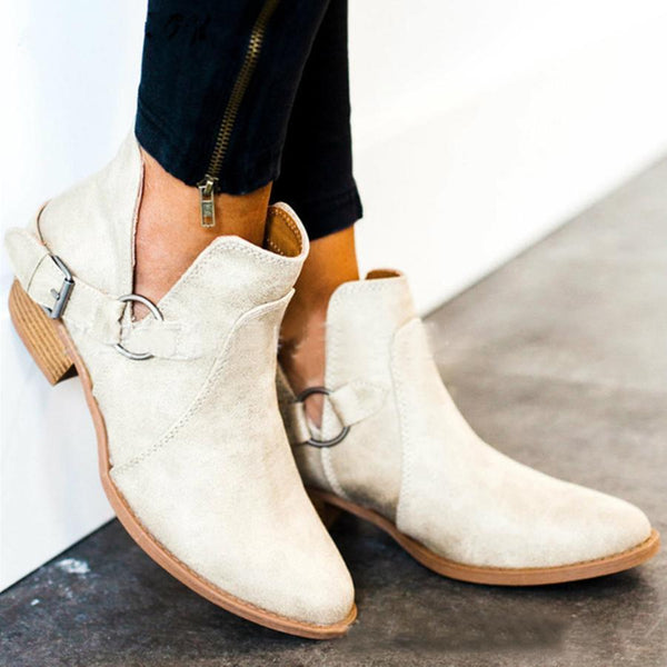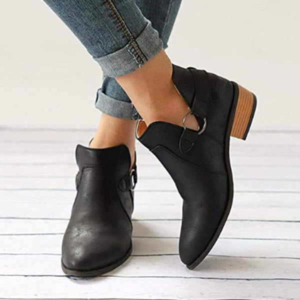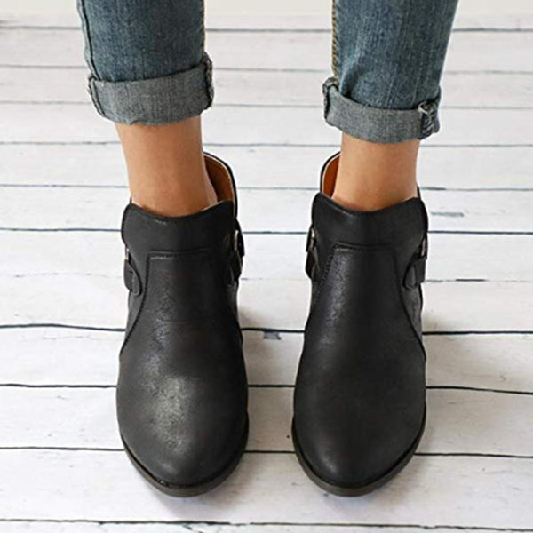 Vanliga chunky lågklackade rund tå utomhus ankelstövlar