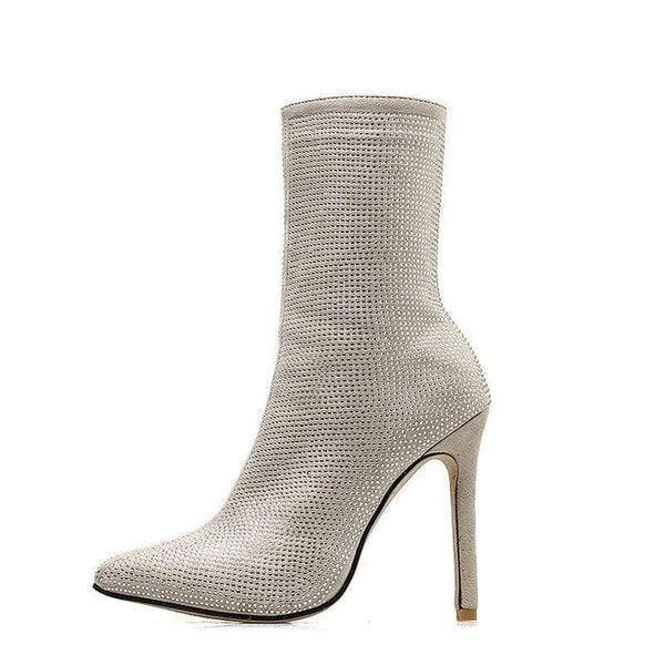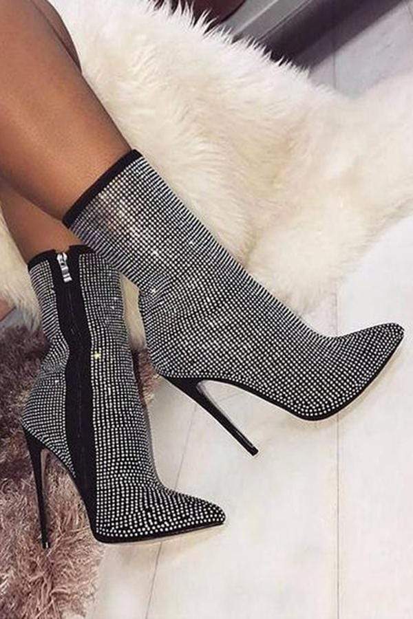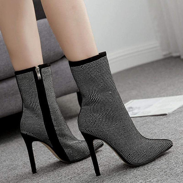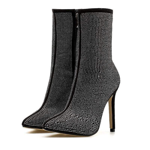 Nya damstövlar Stor storlek spetsiga strass fina superhögklackade stövlar