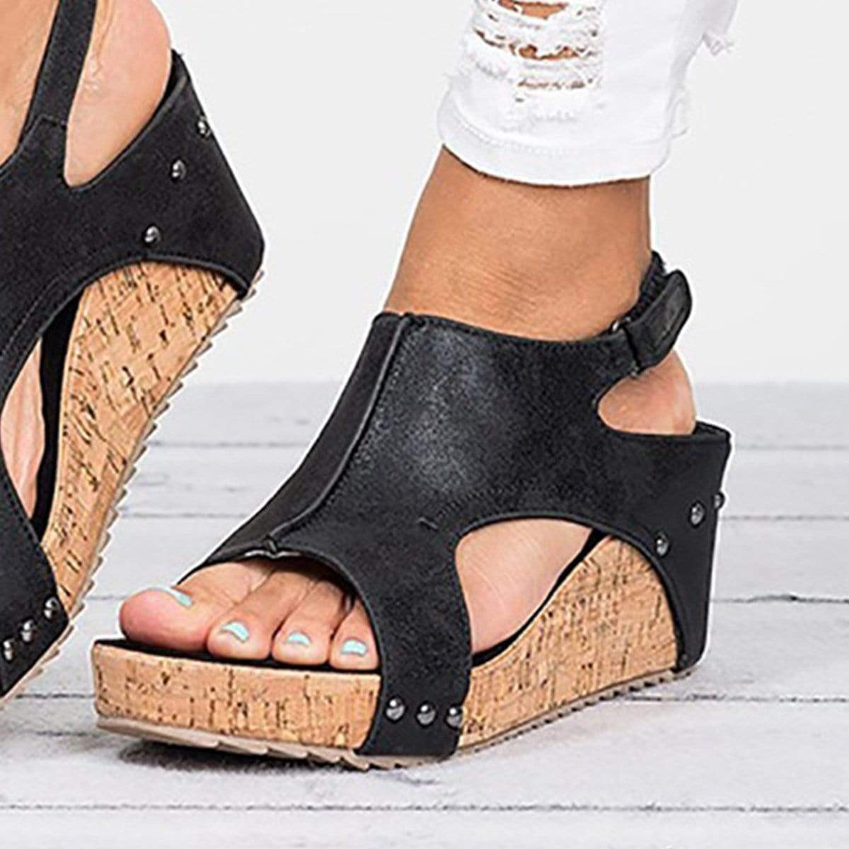 Peep Toe PU-blockerande krok-ögla sandaler Skor