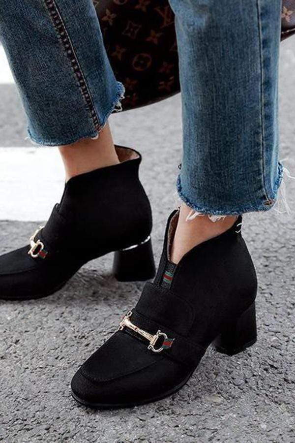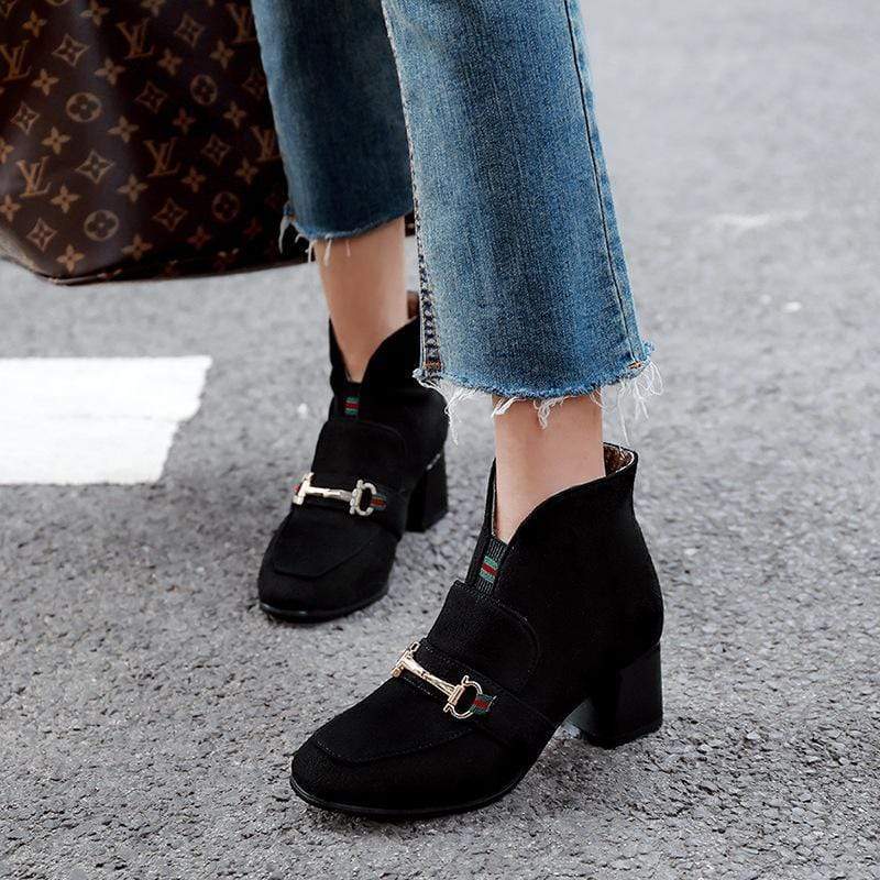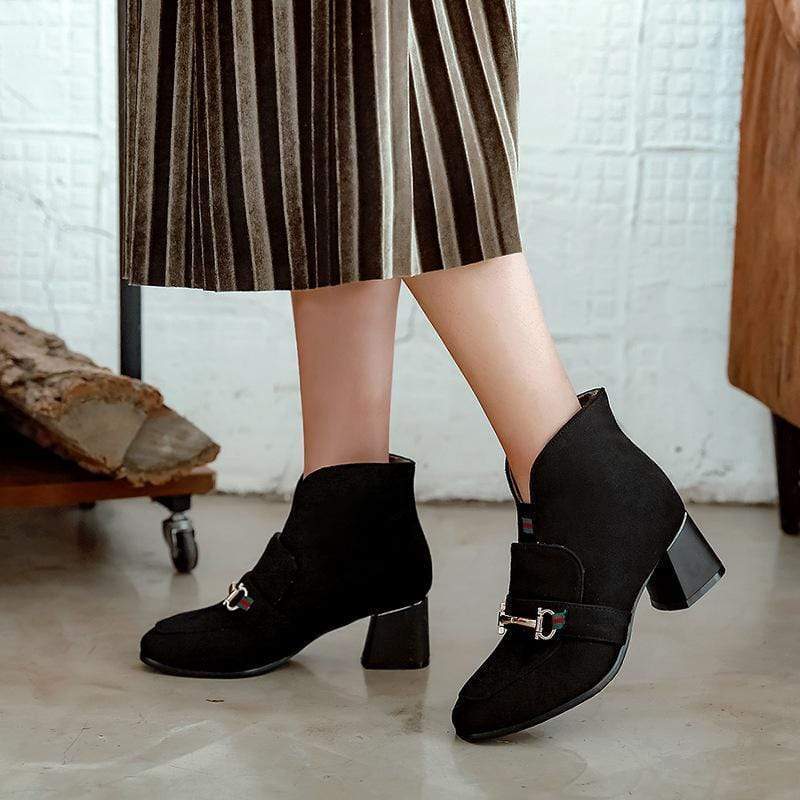 Bekväm fyrkantig klack med Martin-stövlar med lågt rör
