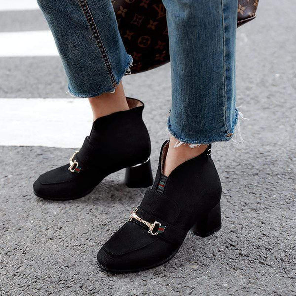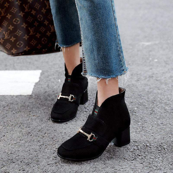 Bekväm fyrkantig klack med Martin-stövlar med låg tub