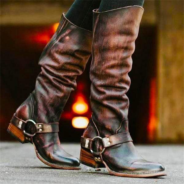 Snygga riddarstövlar i vanligt läder med högt rör