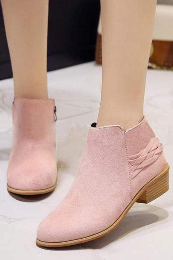 Vanlig Chunky lågklackat sammet rund tå Casual Date ankelstövlar