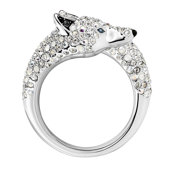 Swarovskis Polar Bestiary-kollektion utforskar naturens skönhet under vintermånaderna. Inspirerad av nordiskt djurliv har den här ringen en arktisk varg som sveper sig runt fingret. Organiskt formad i rodiumpläterad metall och glittrande med exklusiv Swarovski-kristallpavé, är det en unik och elegant...