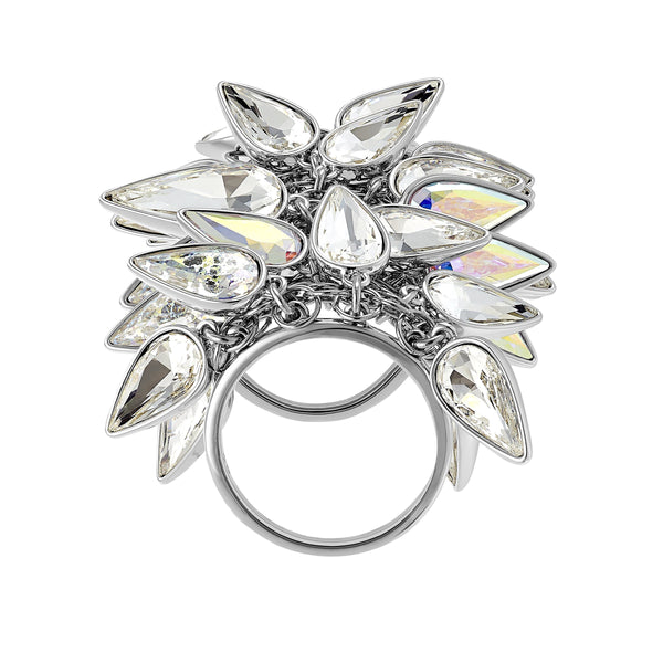 Swarovskis önskan att ta smyckesdesign till nästa nivå lyser genom denna statement-ring. Den utarbetade silhuetten är gjord i delikat rodiumpläterad metall, som har strängts tätt med ett överdådigt antal dinglande kristaller i en blandning av isiga nyanser. En del av...