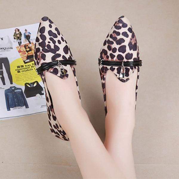 Produktnamn Leopard-tip-punktlägenheter varumärke modevova SKU FL6CEA01C2322B Produktnummer. SR201809 Kön Kvinnor Stil Tillfällig Färg Beige, mörkbrun Typ Platt Tillfälle Dagligt liv Material Gummi/mocka konstgjord PU Dekoration Leopardmönster Typ av häl Platt klack Hälhöjd 1 cm Plattform 0,5 cm Observera: Alla mått...