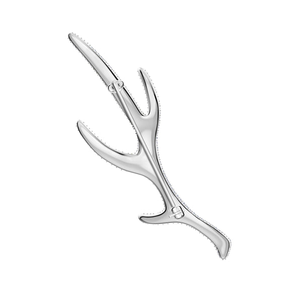Föröva naturens skönhet i vinter i denna slående och eleganta rodiumpläterade brosch. Den vågade hornsilhuetten hyllar djurlivet i polcirkeln och glittrar med kristallpavé i en raffinerad blandning av isiga toner. Bär med andra plagg från Polar Bestiary-kollektionen för extra nordiska...