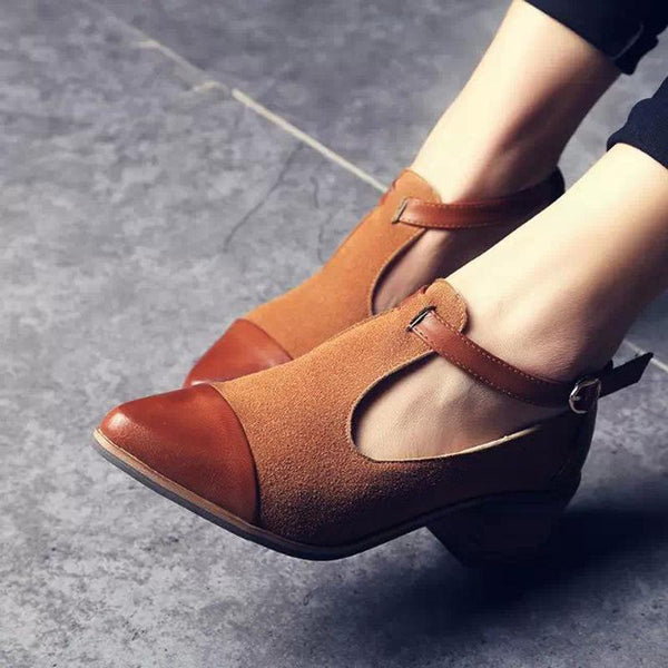 En-rads spetsigt spänne i enfärgad halkfria läderstövlar