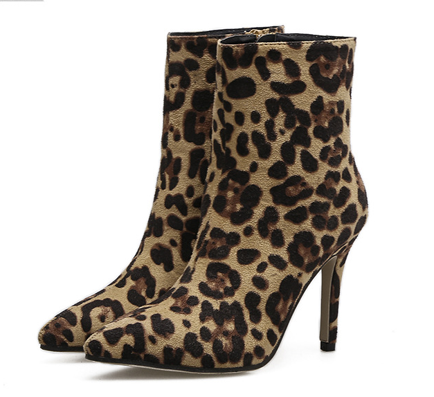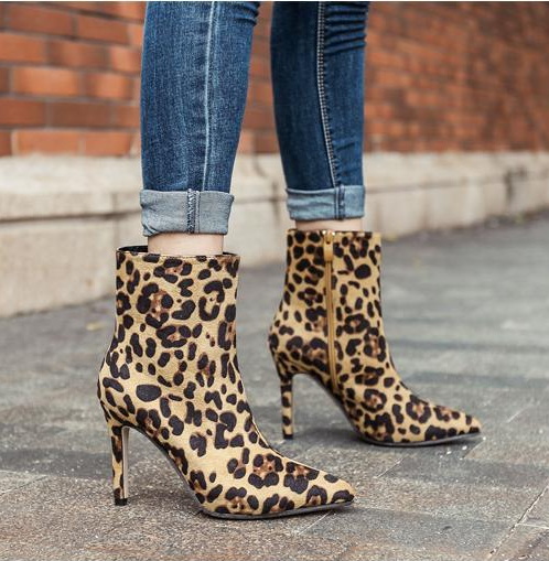 | produktnamn | Leopardtryckta spetsiga högklackade stövlar |