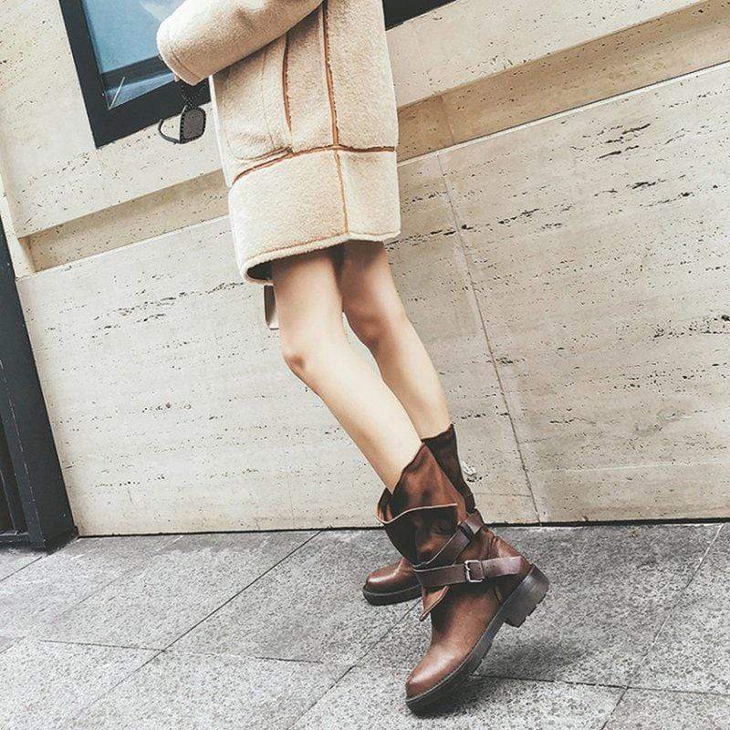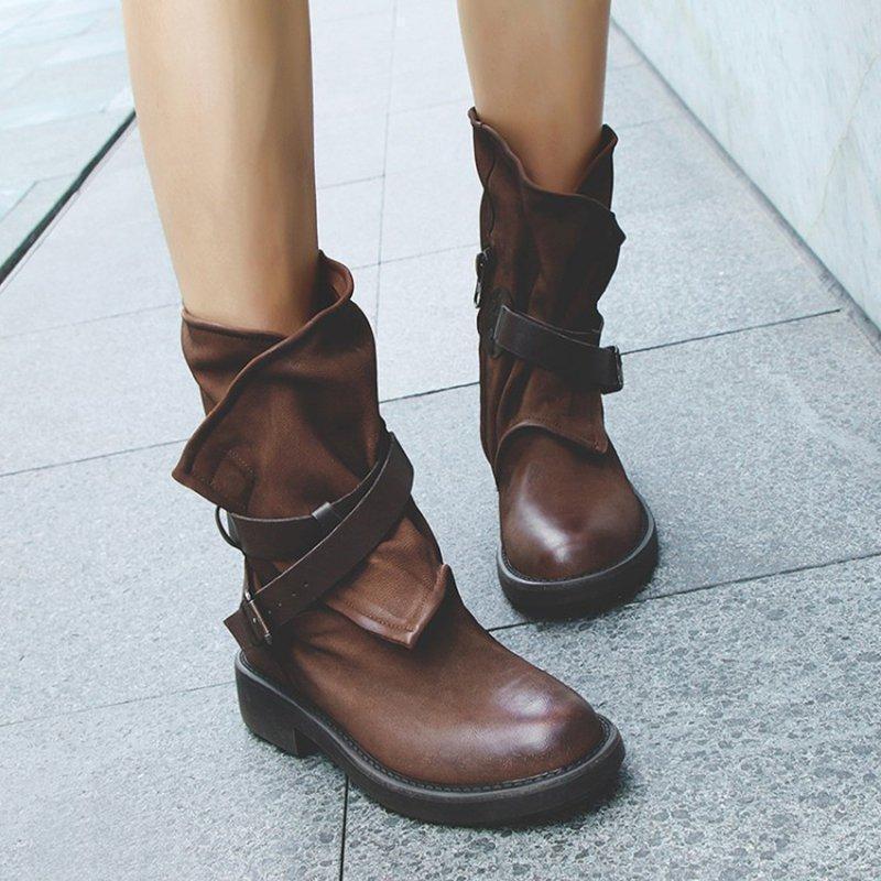 Plus storlek justerbart spänne mid-calf kvinnor motorcykel stövlar
