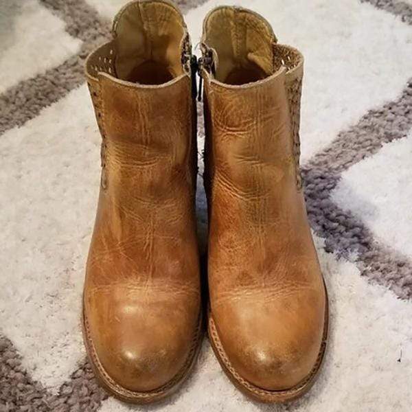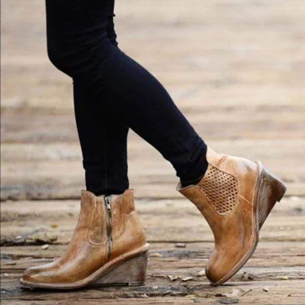 Snygga höststövlar med mellanklack ihåliga snidade kvinnor