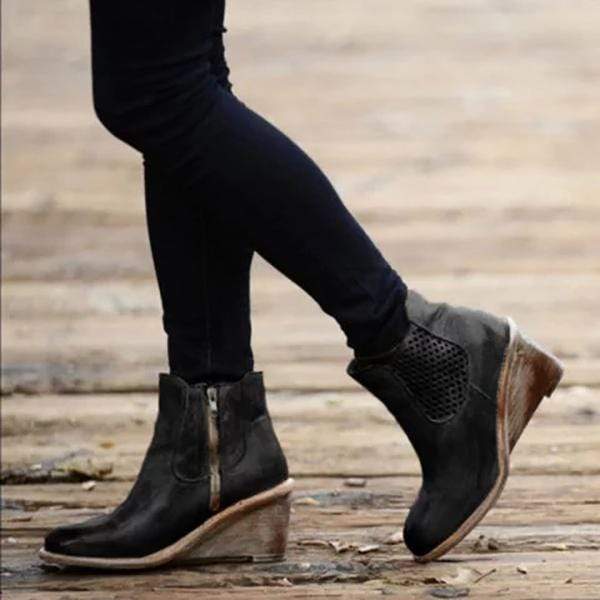 Snygga höststövlar med mellanklack ihåliga snidade kvinnor